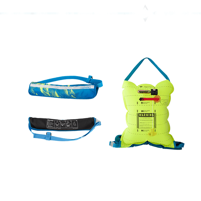 החגורה כוללת בלון גז עם ניצרת משיכה לניפוח מהיר. הבלון גז תואם לבלוני CO2 במשקל 16-22 גרם. ניפוח ידני (אוראלי) אפשרי במידת הצורך.