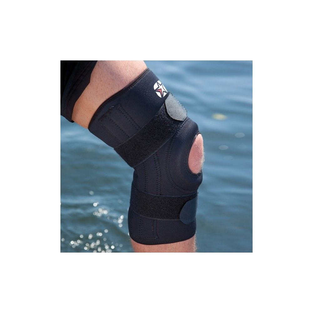 מגן ברך לתמיכה עם רצועות מתכווננות ובד גמיש נאופרן מתאים גם לספורט ימי