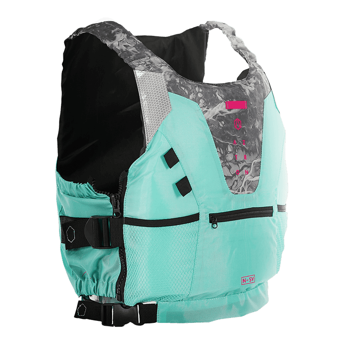 האפוד מאובטח באמצעות רוכסן YKK חזק, אבזמי בטיחות ורצועות מתכווננות על המותניים, האפוד מספק לחותרים הגנה בטיחותית מרבית תוך הבטחת התאמה קלה ונוחה. הרוכסן הצידי מעניק גודל כניסה מתכוונן וגם בגלל הדפנות הפתוחות.