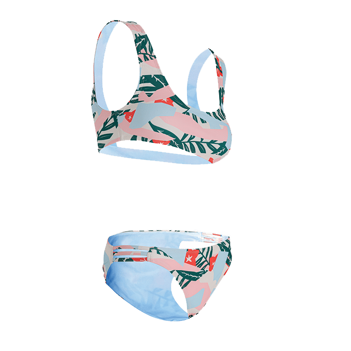 • עיצוב אופנתי: בגד ים ביקיני עם הדפס פרחוני טרופי, בעל חזיית ברלט עם רצועות קבועות וסגירה אחורית.