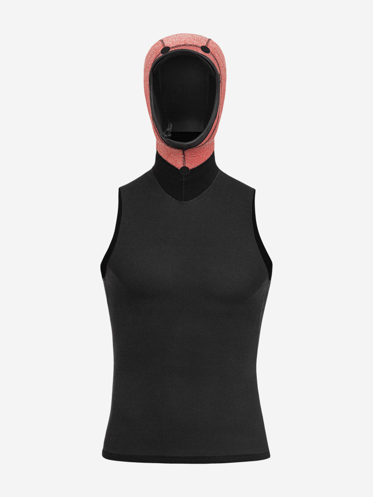 גופייה עם כובע לגלישה של ORCA עשוייה מניאופרן YAMAMOTO מיפן בעובי 2 מ"מ. פריט מושלם לשכבה נוספת מתחת לחליפת גלישה בגלישה במים קרים. כדי להשיג בידוד תרמי טוב יותר והתאמה טובה יותר מהגופייה, ORCA עשו את חלקה הפנימי של הגופייה מחומר-Open Cell ( שכבת גומי עם תאים פתוחים בגומי ) המקנה התאמה טובה יותר לגוף ובידוד משופר בצורה משמעותית. לגופיה משלב כובע עם מצחייה, עם ניאופרן חלק מבחוץ, המגן מפני קור מהרוח ואריג טרמי ייחודי בצידו הפנימי של הכובע, המעניק בידוד תרמי מעולה נוחות ונעים למגע. על מנת לשפר את ההתאמה של הכובע על הפנים יש מיתר אלסטי עם אבזם מתכוונן להידוק על הפנים לאטימה והתאמה טובה יותר.