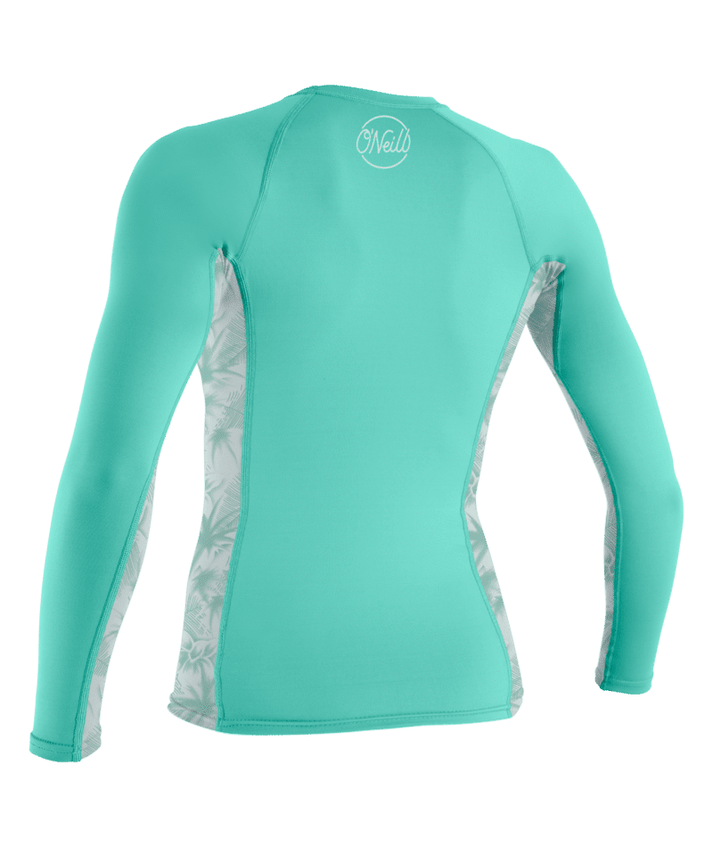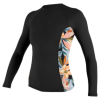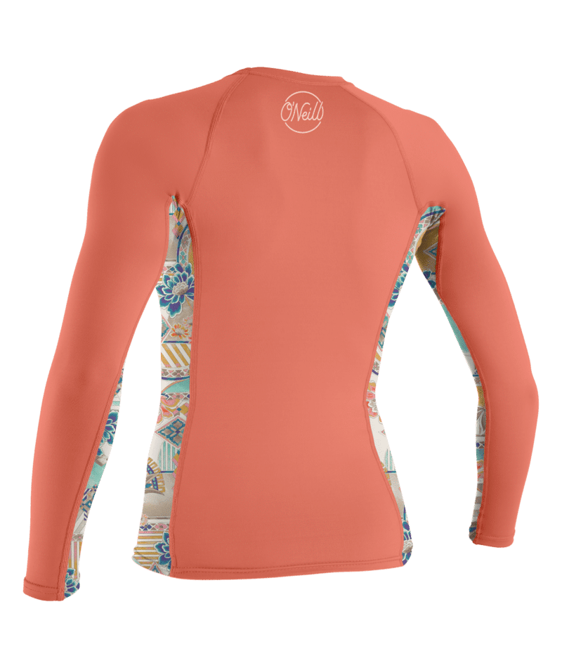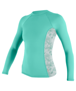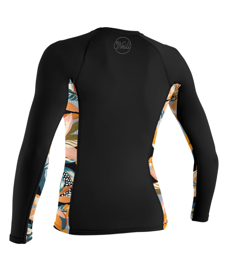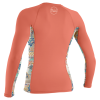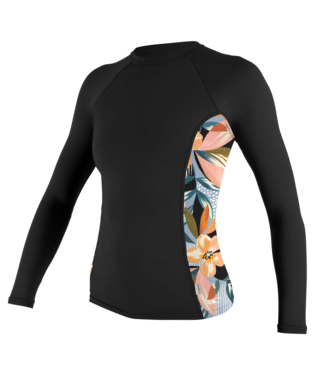חולצת לייקרה שרוול ארוך לנשים מבית מותג הגלישה המוביל בעולם אוניל O'Neill, עם הדפס טרופי בצד.