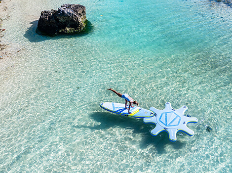 דוק כושר/יוגה מושלם לכל סוגי פעילות הכושר או היוגה. מצוייד ב-16 טבעות D לחיבור 8 גלשני סא בו זמנית! חובה בכל מועדון סאפ או בית ספר ליוגה במים.