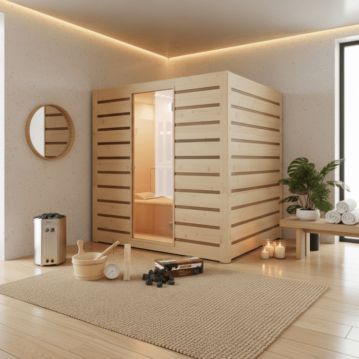 סאונה מסורתית יוקרתית וחסכונית באנרגיה ל6 אנשים.