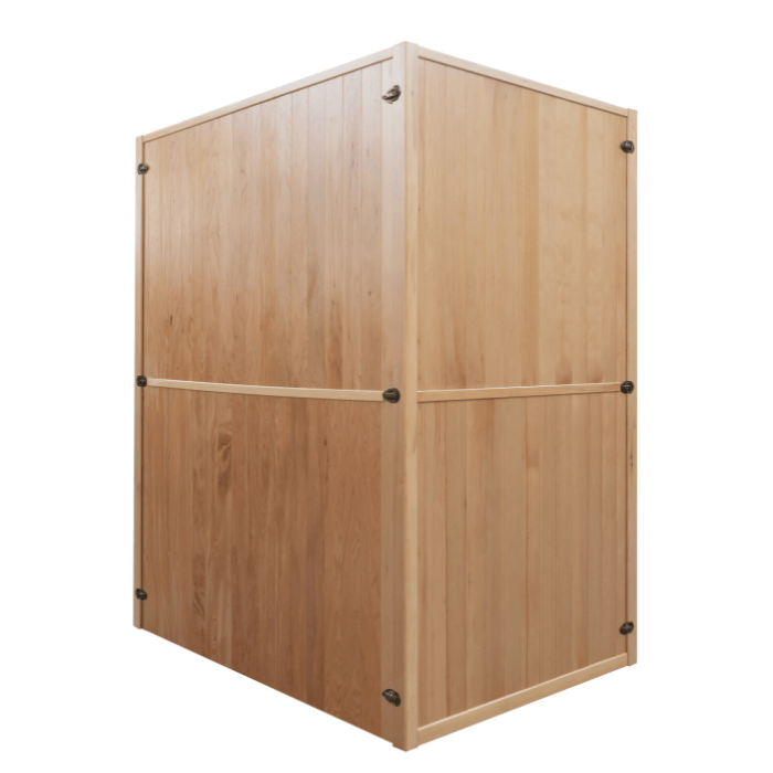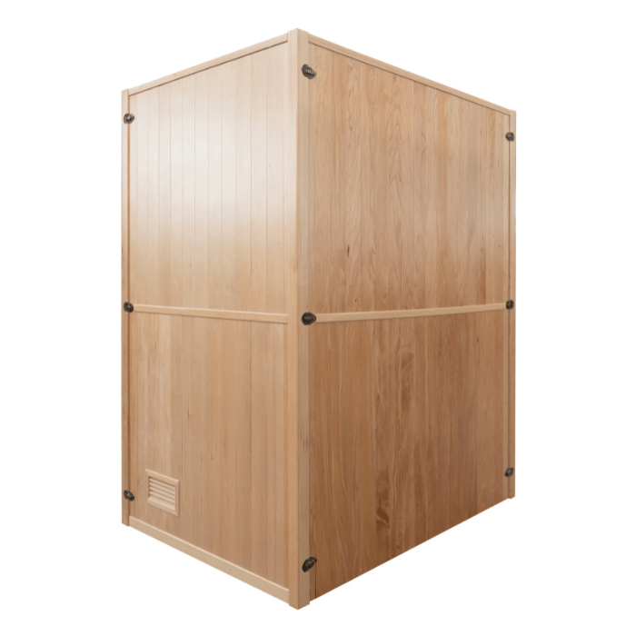 הסאונה בנויה מעץ אשוח קנדי גולמי ועמיד, הידוע בתכונותיו האנטי-בקטריאליות,
