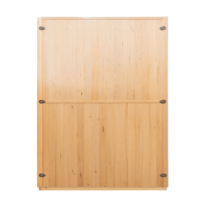 הסאונה בנויה מעץ אשוח קנדי גולמי ועמיד, הידוע בתכונותיו האנטי-בקטריאליות,