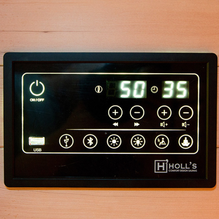סאונת Purewave 3C כוללת פאנל שליטה דיגיטלי חכם המאפשר בקרה פשוטה על הטמפרטורה ומערכת השמע המובנית. דלת זכוכית מחוסמת בעובי 6 מ"מ מוסיפה אלמנט של עיצוב יוקרתי ובטיחות. האבזור הנלווה כולל מערכת שמע עם חיבור Bluetooth/MP3 ותאורת LED כרומותרפית ב-7 צבעים, המאפשרות לשדרג כל סשן לחוויית רוגע שלמה.