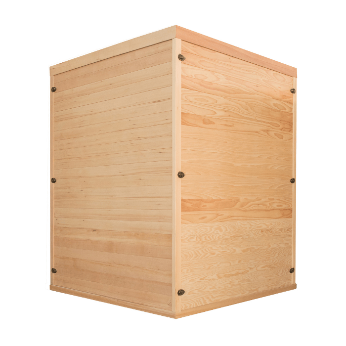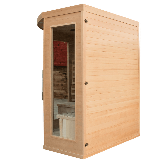 הסאונה בנויה מעץ אשוח קנדי איכותי, המבטיח עמידות לאורך זמן ומעניק מראה טבעי וחם. דלת הזכוכית המחוסמת בעובי 8 מ"מ מספקת ביטחון ותחושת פתיחות.