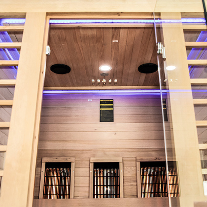 סאונת Venus Hybrid כוללת תאורת LED עם כרומותרפיה ב-7 צבעים, המוסיפה לחוויה אלמנט של רוגע ושלווה. מערכת השמע המובנית עם חיבור Bluetooth, MP3 ורדיו FM מאפשרת לך ליהנות ממוזיקה או פודקאסטים אהובים במהלך הסשן, ומעצימה את תחושת הרוגע והפינוק.