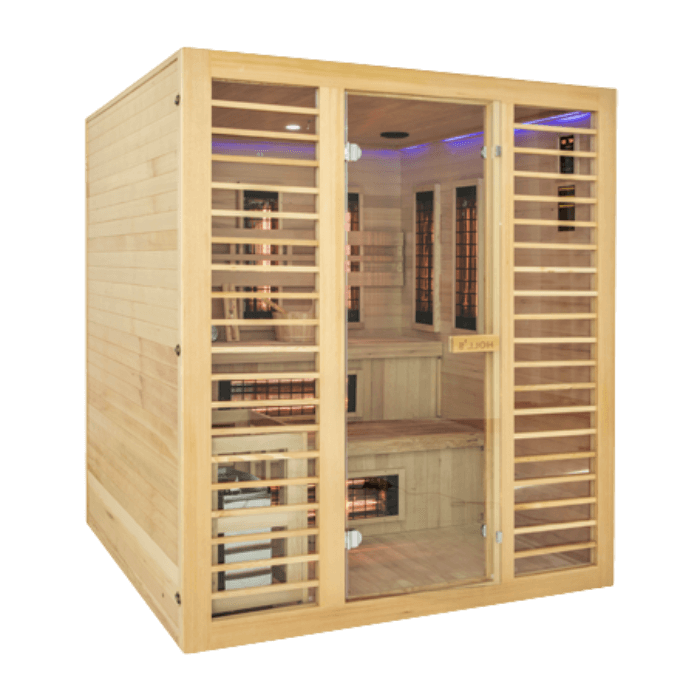 סאונת 4 Venus Hybrid בנויה מעץ אשוח קנדי איכותי, הידוע בעמידותו ובמראהו היוקרתי. המבנה הפנימי משלב ספסלים מרווחים ותאורת LED עם כרומותרפיה ב-7 צבעים, המעניקים אווירה מרגיעה ומיוחדת. בנוסף, מערכת השמע המובנית, הכוללת חיבור Bluetooth/MP3 ורדיו FM, מוסיפה אלמנט אישי ומאפשרת ליהנות ממוזיקה או תוכן אהוב במהלך השהות בסאונה.