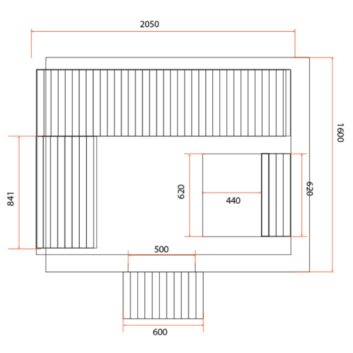 הסאונה מצוידת באביזרים חיוניים, כולל דלי, כף, שעון חול ומדחום, שמוסיפים פונקציונליות ומאפשרים שליטה נוחה. שילוב זה יוצר חוויית סאונה מקיפה, נוחה וקלה לשימוש בכל פעם.
