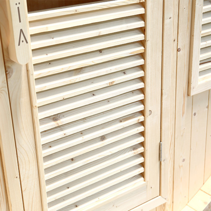 מבנה הסאונה דורש תחזוקה מינימלית, הודות לעמידות העץ בפני שחיקה ופגעי מזג האוויר. כל פרט תוכנן בקפידה כדי להבטיח מוצר עמיד, קל לתחזוקה ומותאם לשימוש ממושך בסביבה חיצונית. סאונת Gaïa Bella משלבת איכות חסרת פשרות עם פונקציונליות מושלמת.
