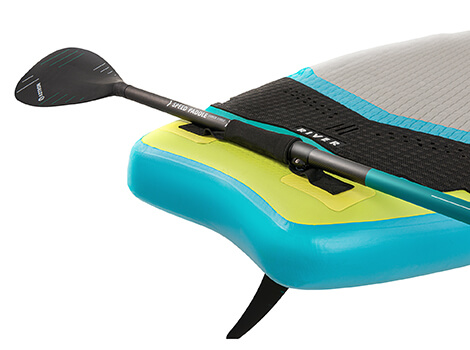 מערכת עגינה בעלת 4 טבעות D-Ring בחזית הסאפ לקשירת חבל בנג'י גמיש תאפשר לכם לאחסן את החפצים האישיים שלכם במהלך החתירה ולגשת אליהם בקלות!