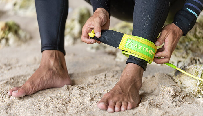 רצועת רגל 7 fit לגלשן גלים מבית AZTRON מציעה אורך מינימלי בינך לבין הגלשן שלך. מושלם עבור סשן גלישה בריף. פין בטיחות לשחרור מהיר כלול ברצועה.